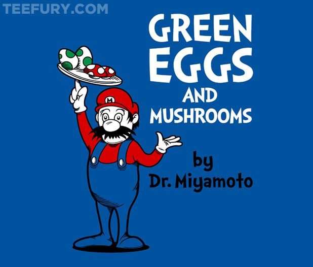 The first t-shirt, “Green Eggs and Mushrooms,” is available at Tee Fury: