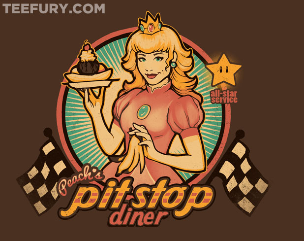 First up is “Peach’s Pit Stop Diner” over at Tee Fury: