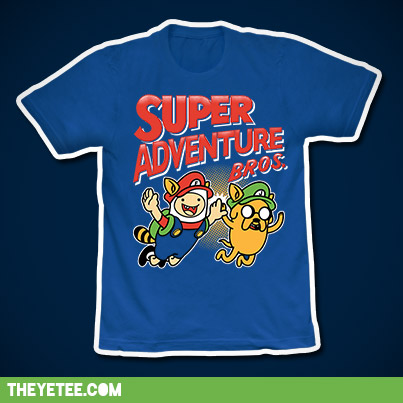 Then, at The Yetee, they’ve got my most recent obsession, “Adventure Time,” mashed up with Super Mario Bros 3 in “Super Adventure Bros:”